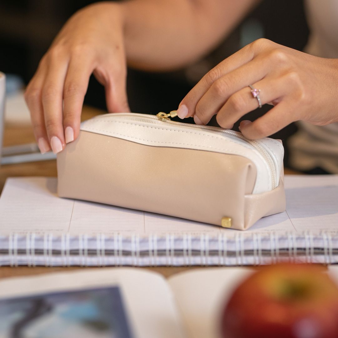 Un estuche compacto y con estilo suave 🤎. En tono beige elegante, ideal para guardar accesorios o pequeños esenciales.